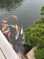 บรรยากาศชิลๆ กับต้นไม้เขียวๆ และปลาคาร์ฟขนาดยักษ์